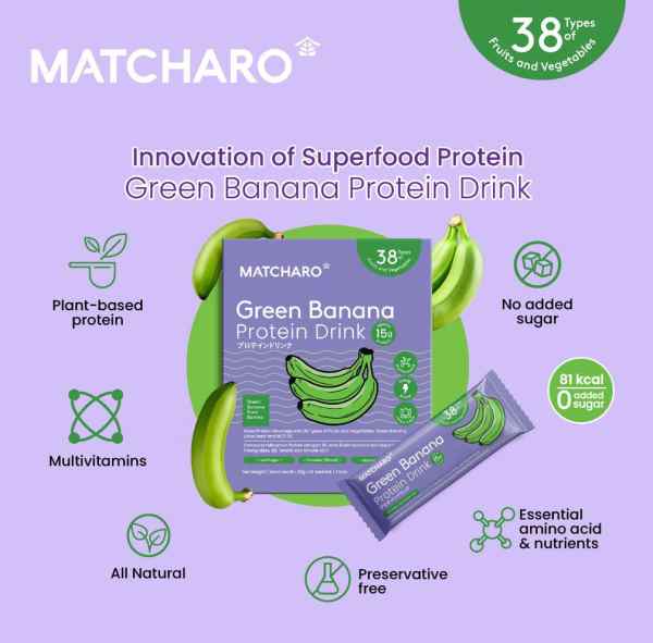 • Matcharo Protein Drink (10’s) – Green Banana Flavour