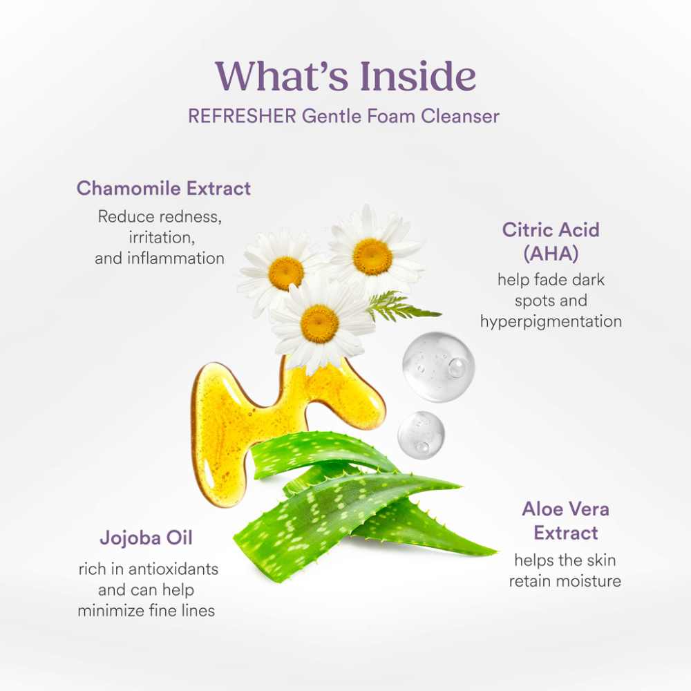 • Formulated with naturally derived ingredients, refresher foam cleanser gently cleanses and revitalizes the skin, leaving it feeling refreshed and purified.