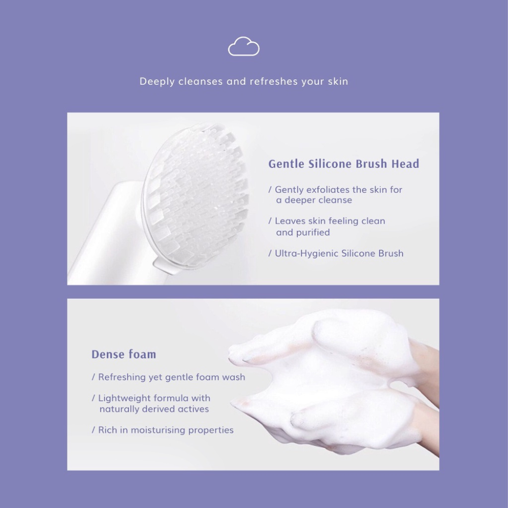 • The sleek bottle comes equipped with an ultra-hygienic silicone brush head, designed to gently exfoliate the skin for a deeper cleanse. This innovative feature ensures optimal cleanliness and helps to unclog pores effectively.