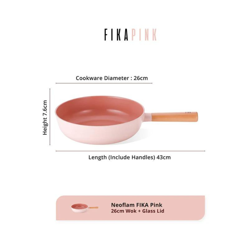Neoflam FIKA Pink Wok with Glass Lid 26cm
