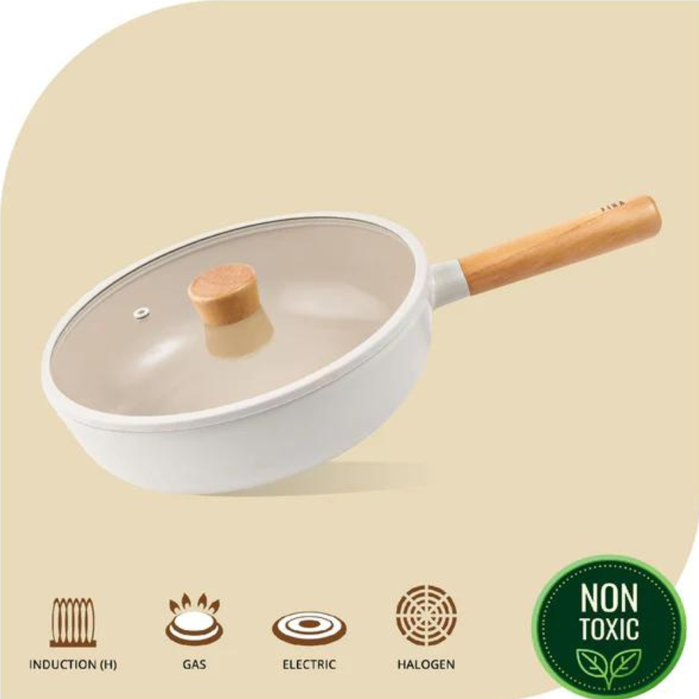 • The wooden handle not only enhances the pan's aesthetics but also provides a comfortable grip, perfect for modern kitchens.