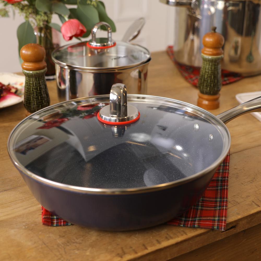 - Forged alumimium cookware for execptional long-lasting durability with ecolon color marble coating