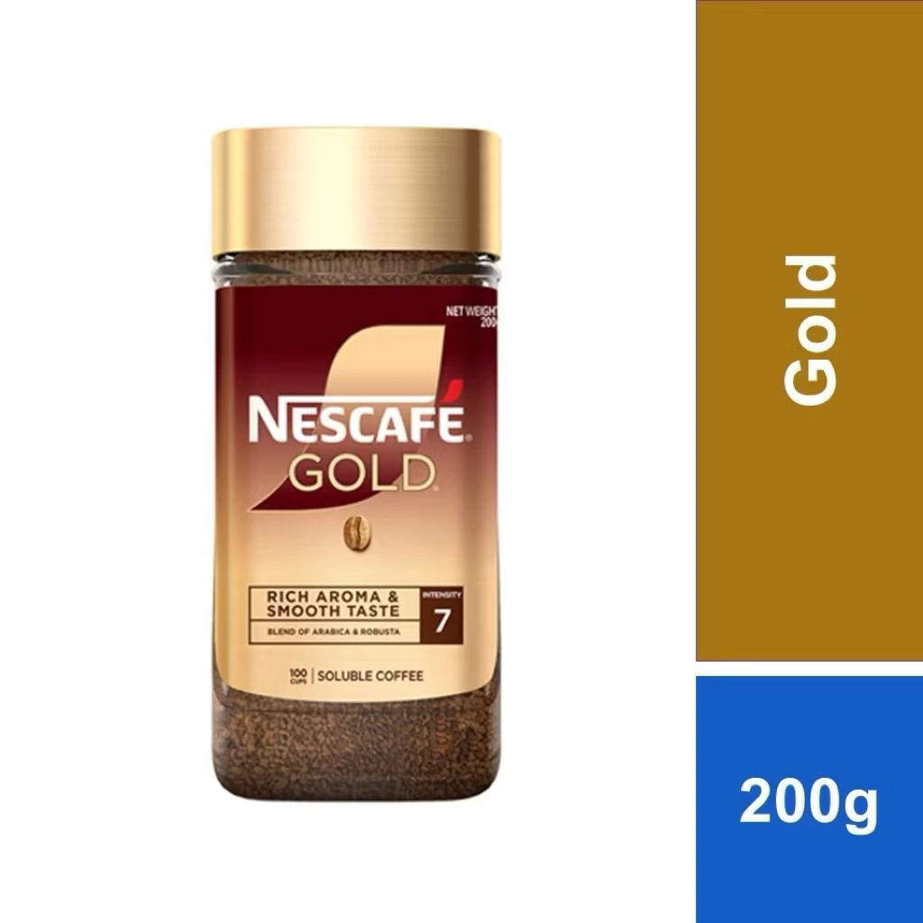 - Nescafe carefully designed glass jar with its aroma-lock lid keeps your Nescafe Gold Blend full of flavour to the last drop. Arabica and a handful of robusta beans are blended together for a rich, yet smooth and rounded taste.