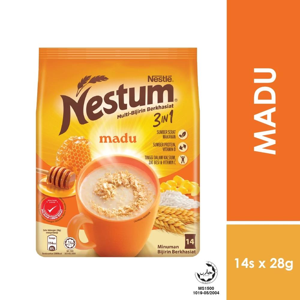 - Nestum 3-in-1 Honey offers a delightful blend of multigrain, enriched with milk and honey flavor. Packed with essential vitamins and minerals, it's a quick and nutritious beverage, perfect for starting your day. Just add hot water for a delicious drink.