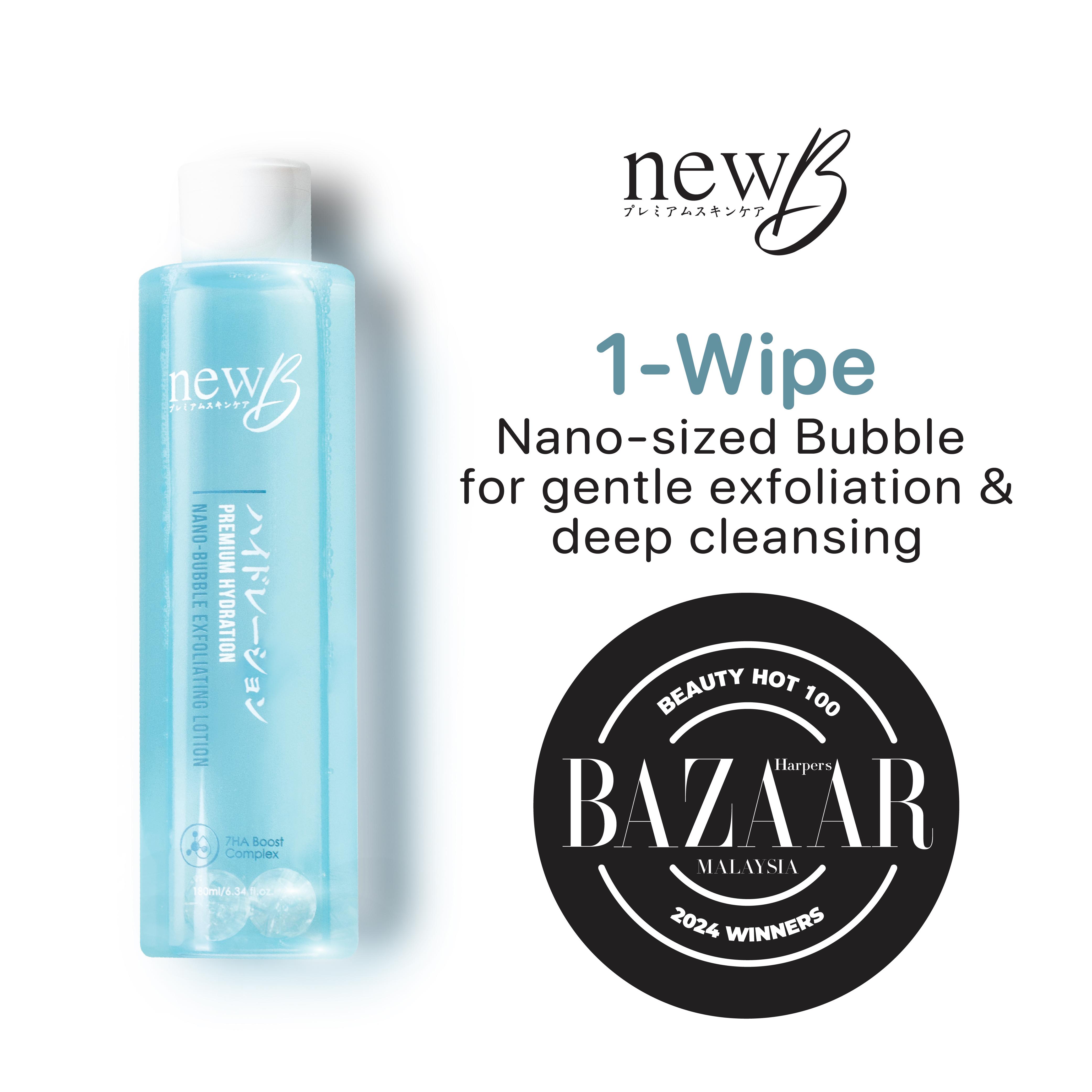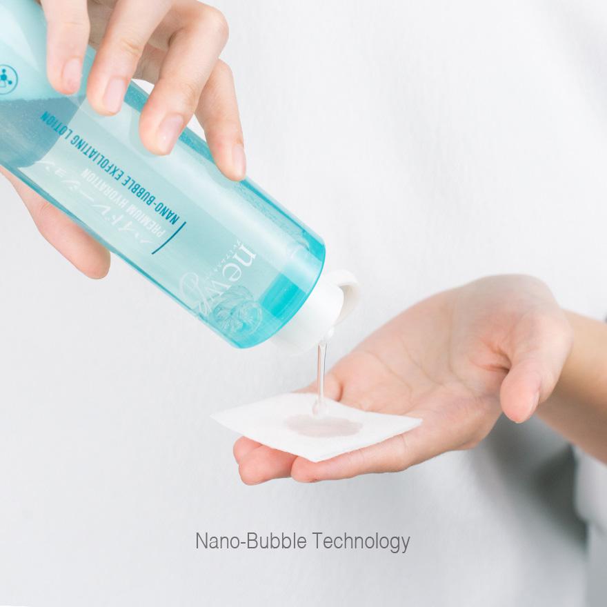 Exfoliating Lotion with NEW Japanese Patented Nano-Bubble Technology that activates ultra-fine bubbles which can penetrate the epidermal layers for enhanced cleansing. Enriched with gluconolactone (PHA) to help remove dead skin cells, refining the skin texture.