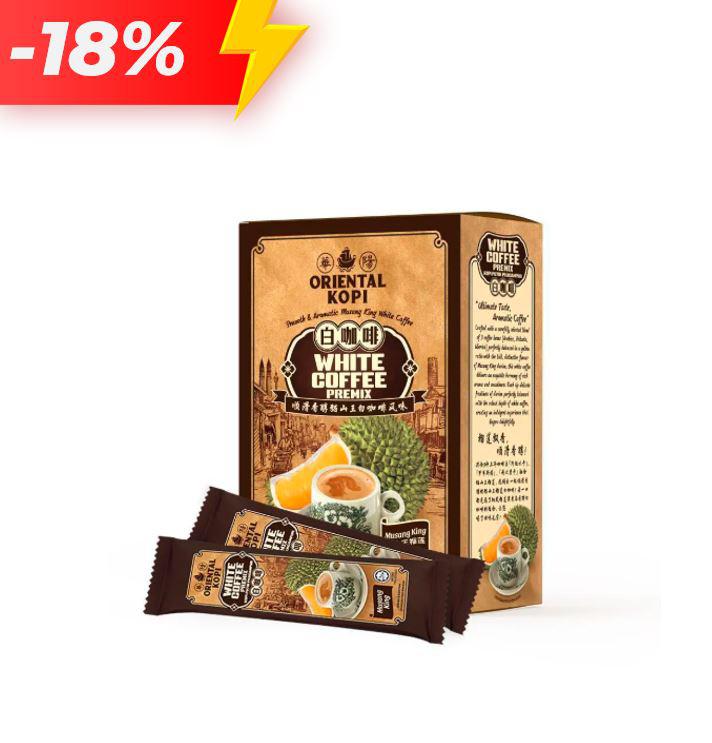- Crafted with a carefully selected blend of 3 coffee beans [Arabica, Robusta, Liberica] perfectly balanced in a golden ratio with the bold, distinctive flavor! For Musang King durian, this white coffee delivers an exquisite harmony of rich aroma and smoothness. Each sip delicate fruitiness of durian is perfectly balanced with the robust depth of white coffee, offering an indulgent experience that lingers delightfully.