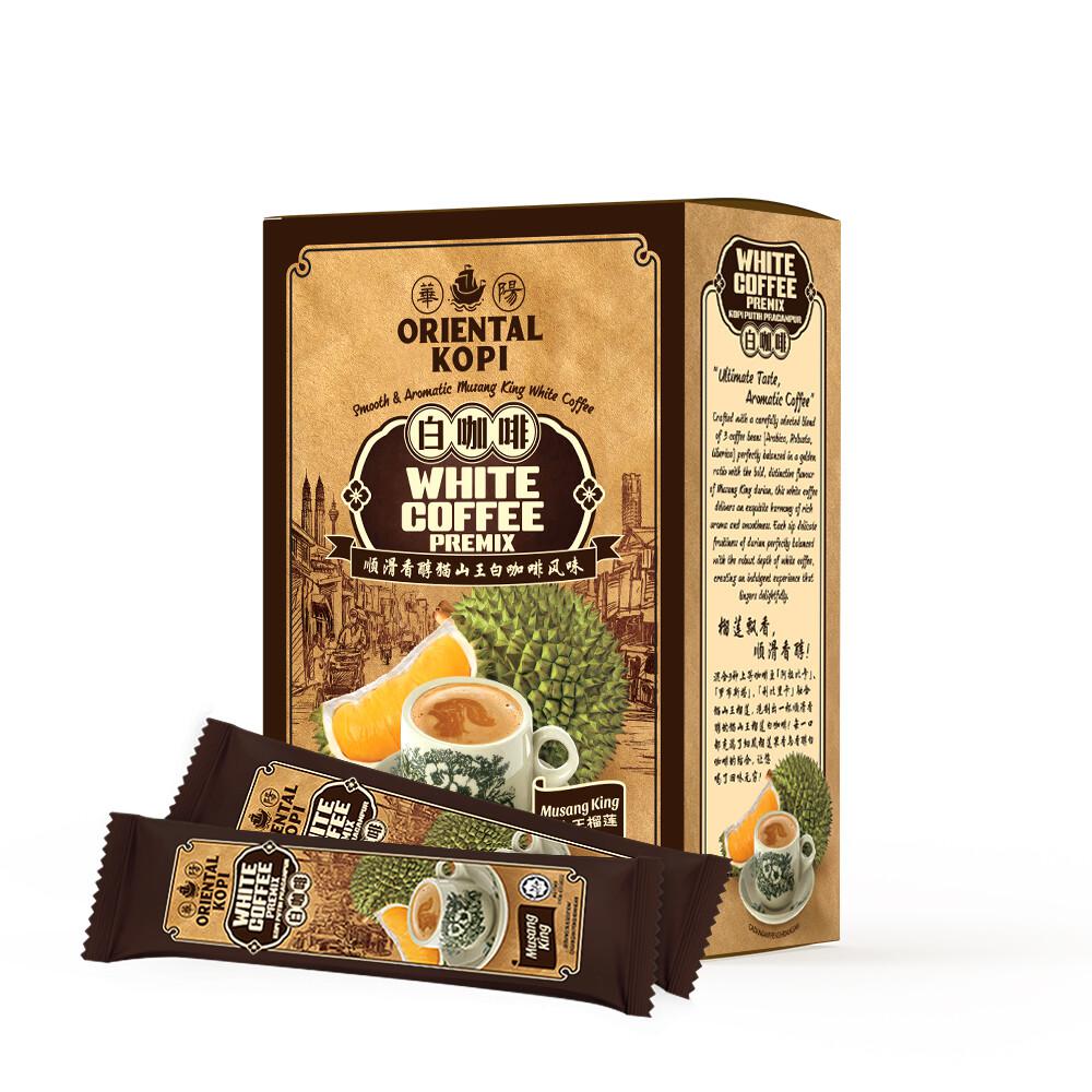 • Crafted with a carefully selected blend of 3 coffee beans [Arabica, Robusta, Liberica] perfectly balanced in a golden ratio with the bold, distinctive flavor! For Musang King durian, this white coffee delivers an exquisite harmony of rich aroma and smoothness. Each sip delicate fruitiness of durian is perfectly balanced with the robust depth of white coffee, offering an indulgent experience that lingers delightfully.