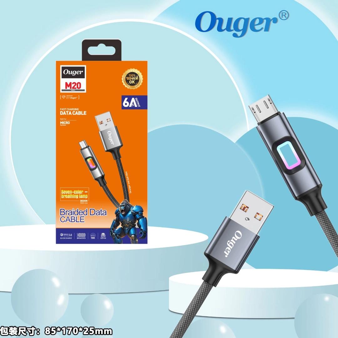 - The OUGER M20 Lightning Cable is an innovative mix of functionality and style, designed to enhance your device’s charging experience. Its unique seven-color breathing lamp design sets it apart, providing a visually appealing indicator of charging activity that pulses gently, making it easier to locate your cable in the dark.