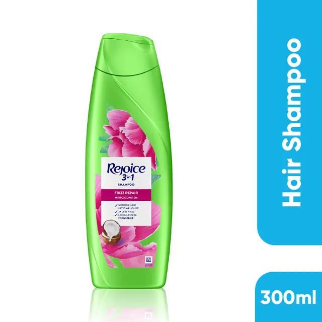 - Rejoice Instant Frizz Repair Shampoo keeps your hair Frizz-free and fragrant. With detangling formula infused with Coconut Essence that instantly fights frizz, keeping it effortlessly smooth and manageable up to 48 hours, along with floral notes of magnolia for a long lasting fragrance.