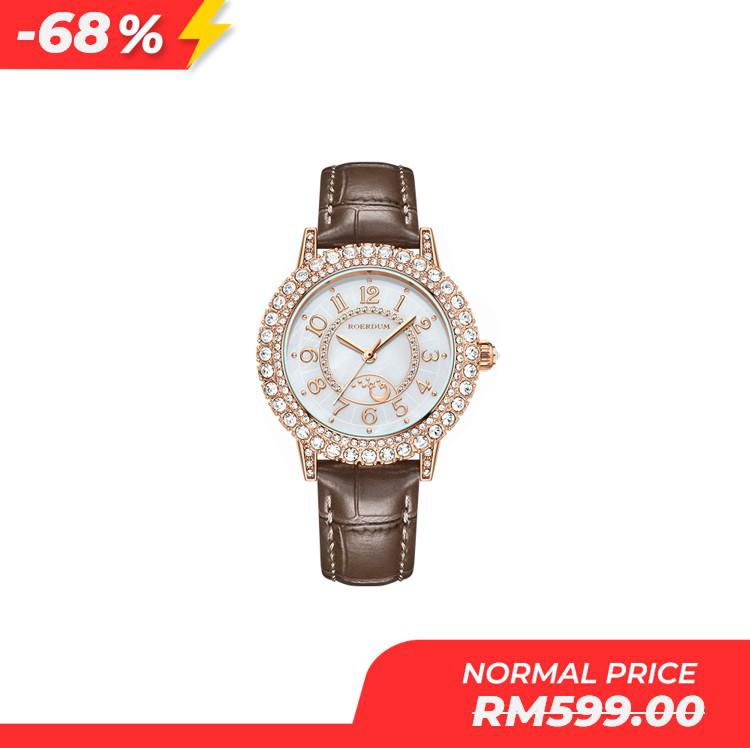 • Encased in rose gold, symbolizing stability and grace, the watch features 150 meticulously cut zircons, highlighting its dazzling elegance