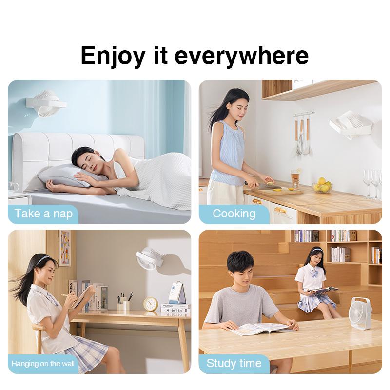 A compact yet powerful dual-use cooling fan designed for modern spaces. Use it on your desk or mount it on the wall for clutter-free comfort. With its silent double-blade airflow, rechargeable portability, and clean minimalist aesthetics, the Rtako D06 delivers refreshing cooling wherever you need it — from bathrooms to bedrooms to workspaces.