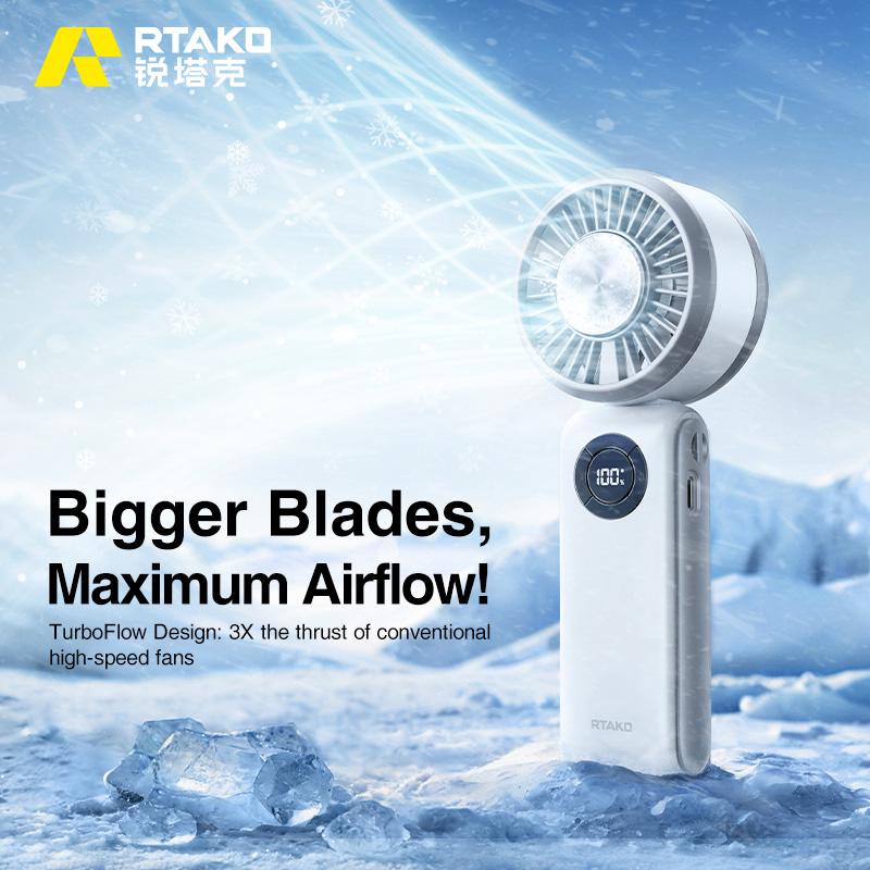 A powerful yet portable handheld fan designed for anytime cooling. With long-lasting battery life, strong airflow, and a clear power display, the Rtako T50 keeps you refreshed at work, outdoors, or on the go.