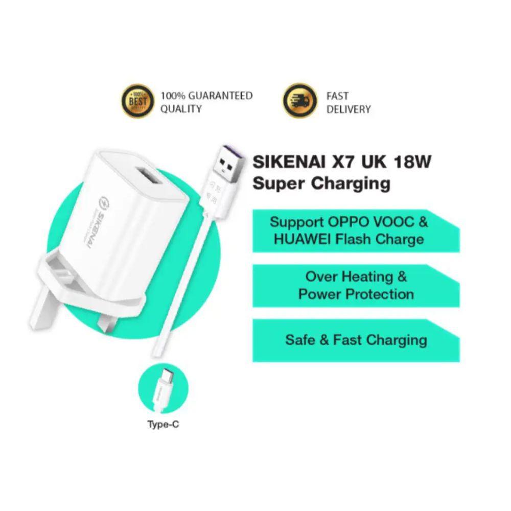 SIKENAI 1.2M 3 Pin Super Fast Charger X7 UK