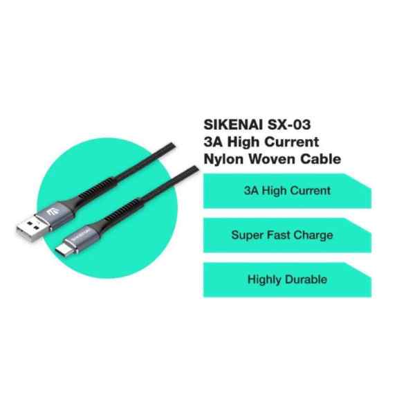 SIKENAI 1M 3A Fast Charging Metal Braided Cable SX-03