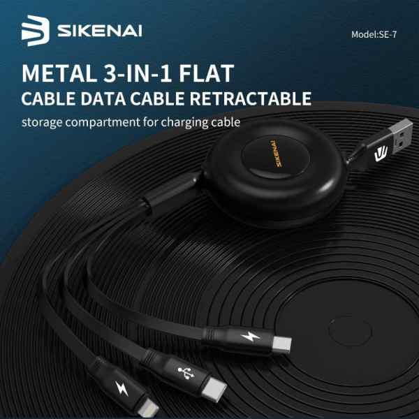 SIKENAI 3 in 1 Flat Retractable Storage Cord Cable SE-07