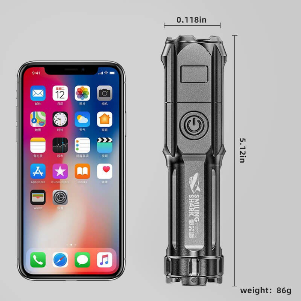 - IPX6 waterproof, zoomable with strong, medium, and strobe modes. USB rechargeable, perfect for outdoor adventures.