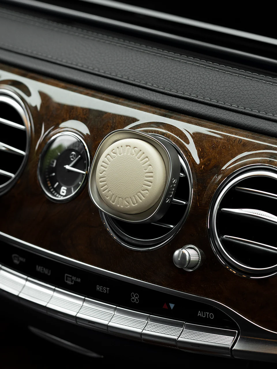 Each car diffuser is made with a smooth PU leather - wrapped face, paired with a lightweight zinc-alloy and aluminum shell that offers both durability and a premium feel.