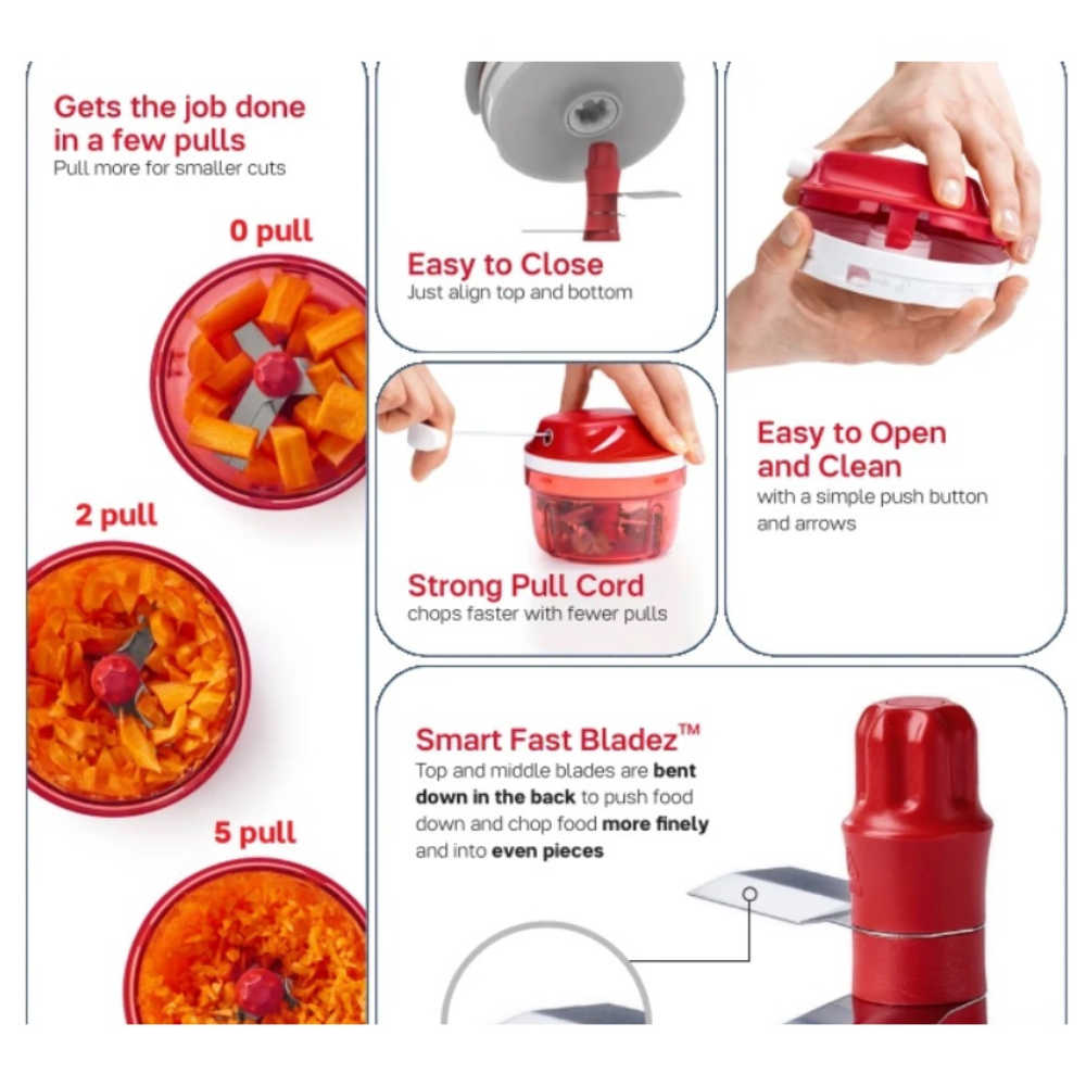 • Chop ingredients 5x faster than experienced chefs, making meal preparation quick and efficient.