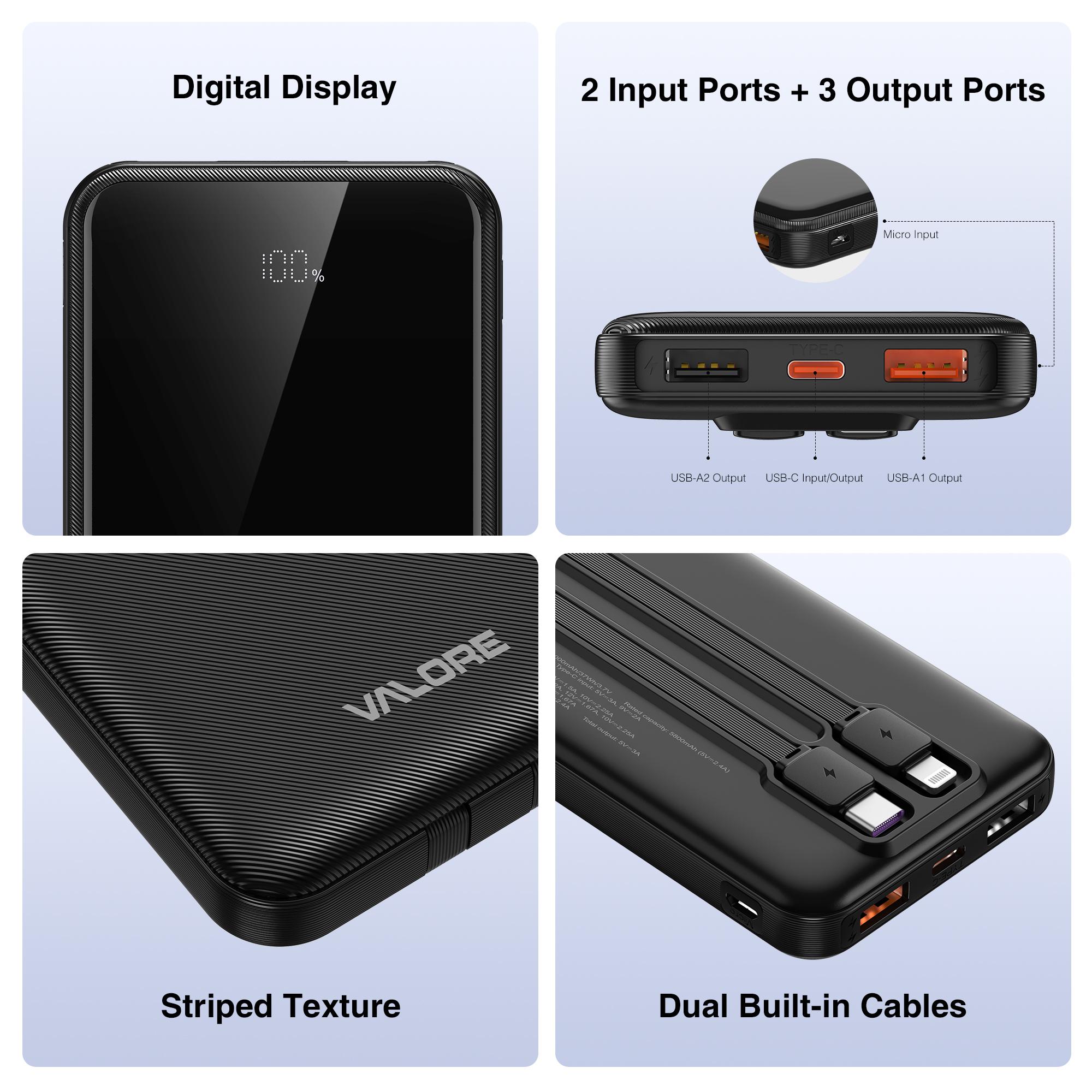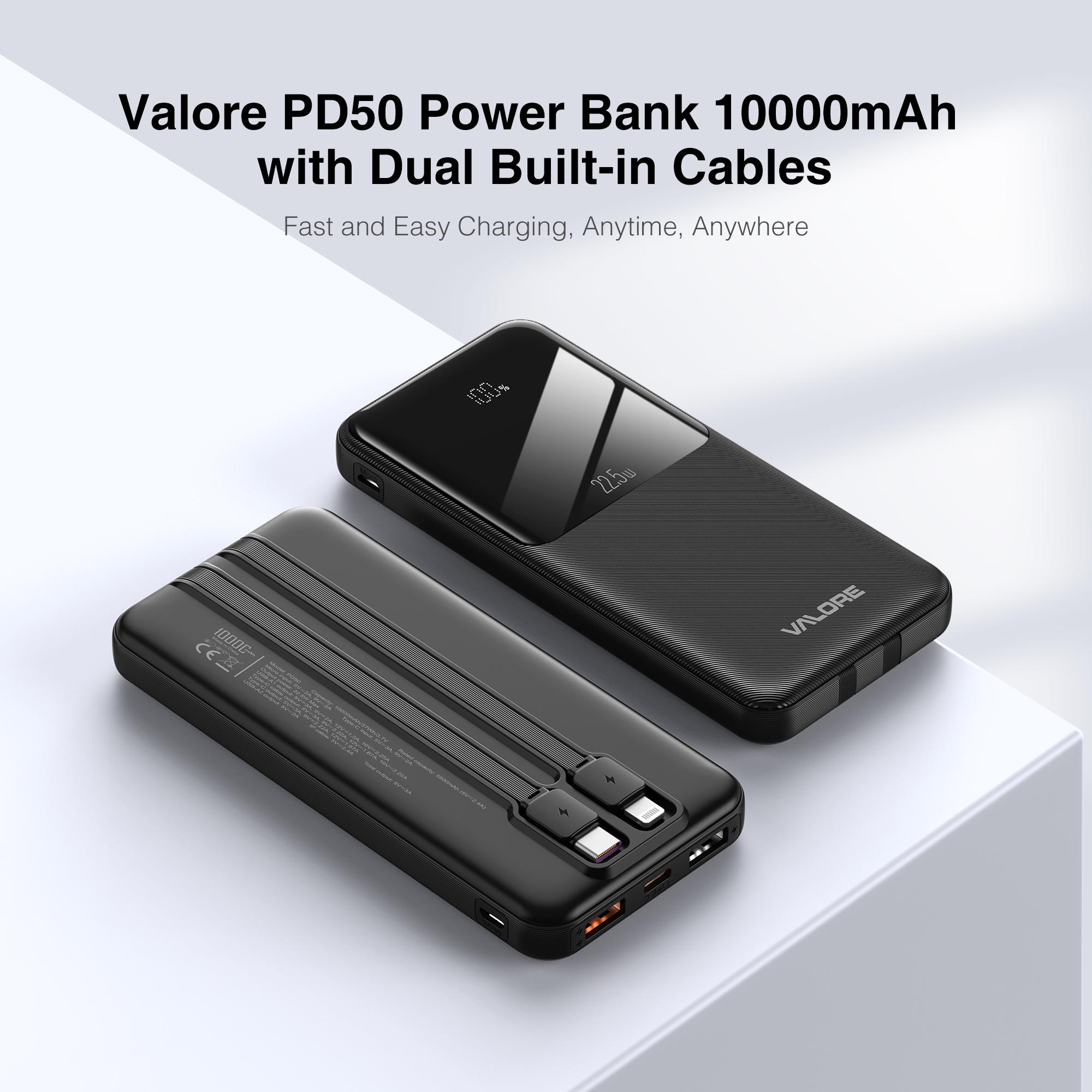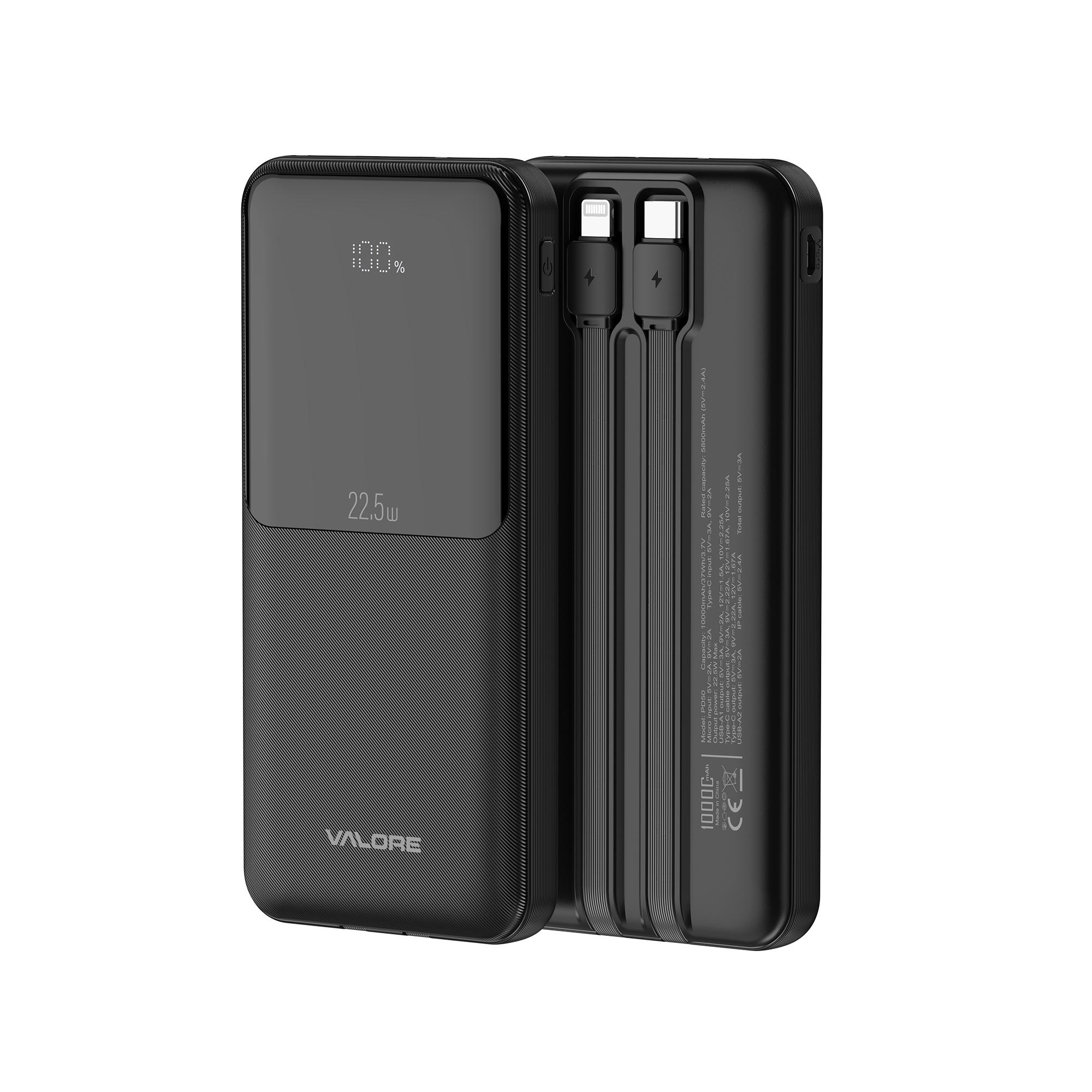 Valore 10000MaH Fast Charging P/Bank W C&L Cables PD50