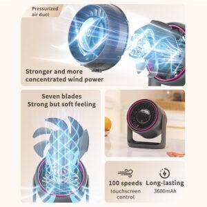 Experience next-level cooling with this desktop circulation fan, designed with a pressurized air duct for stronger, more concentrated wind power.