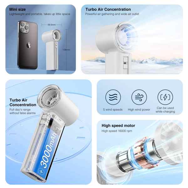 Don’t let the size fool you—this space-saving portable fan packs a punch. Featuring a high-speed motor and focused air output, it delivers powerful cooling in a compact form. With 5 adjustable wind speeds, it’s the perfect blend of performance and portability for any setting.