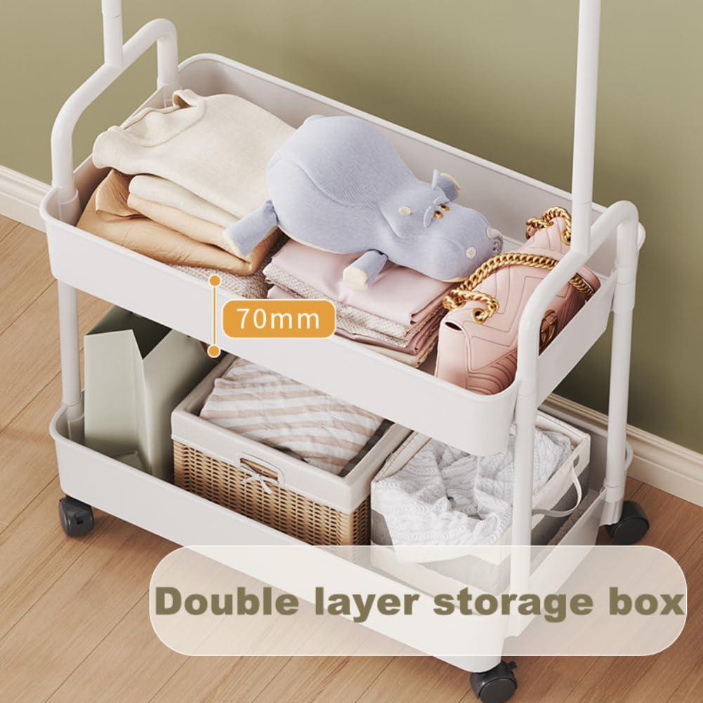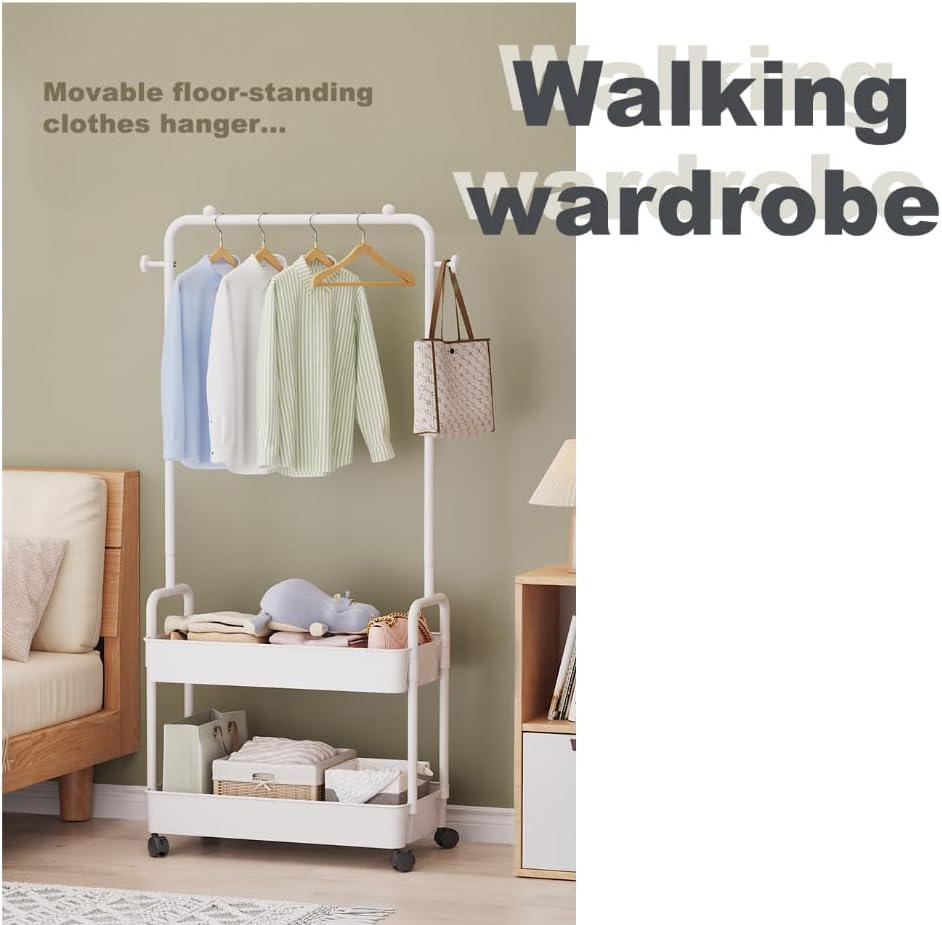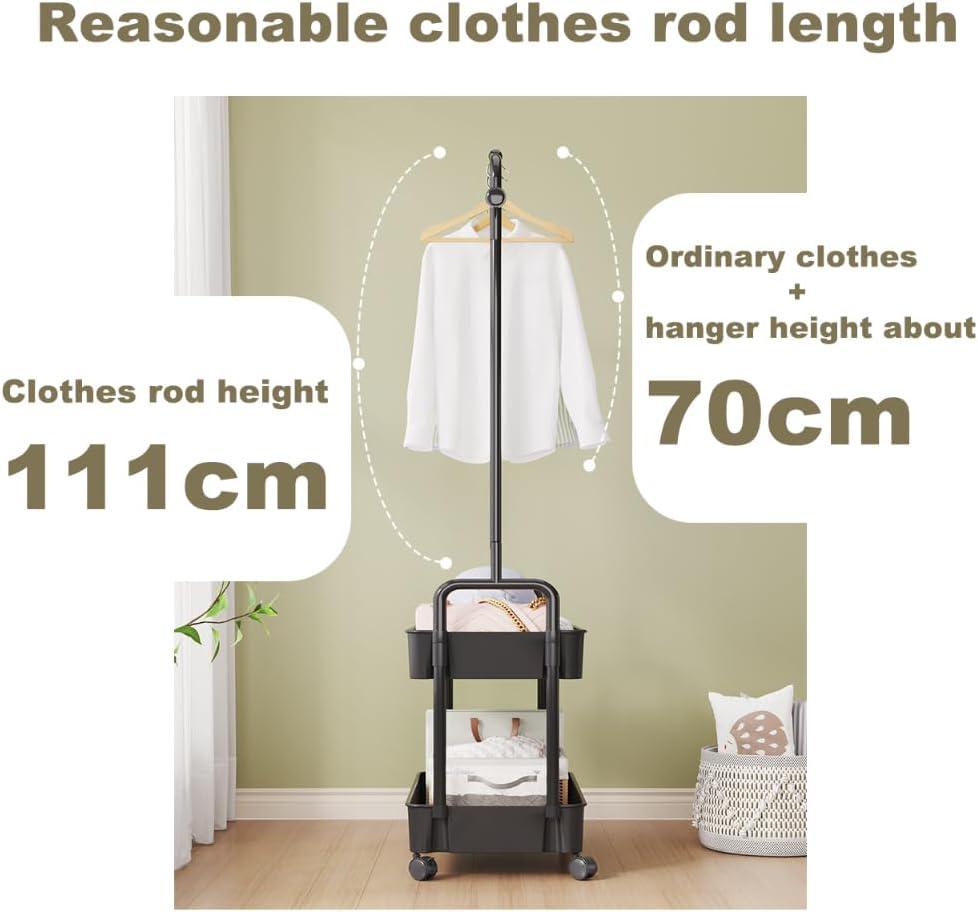 Wardrobe with Wheels & Compartmented Storage Coat Rack – Random Color