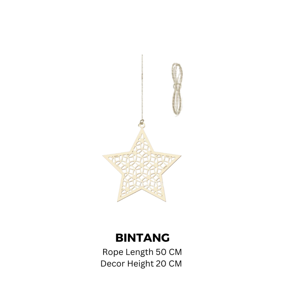• Hari Raya decoration series is beautiful and elegant, exclusively at Harii Potter Home Living! • Wooden Pendant Hanging Decorations for Raya • Wood Material • Various patterns and shapes to choose from to match your home theme!   Available Design: • Mosque • Crescent Moon • Oil Lamp • Kareem • Star   • Package Includes: Wooden decoration only (Price is for one unit) **Disclaimer: Product may appear slightly different from the image.