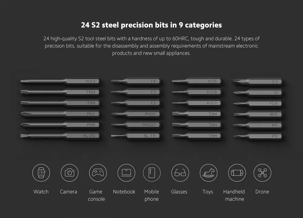 - “24 PCS PRECISION BITS MAGNECTIC BIT STORAGE COMFORTABLE HAN