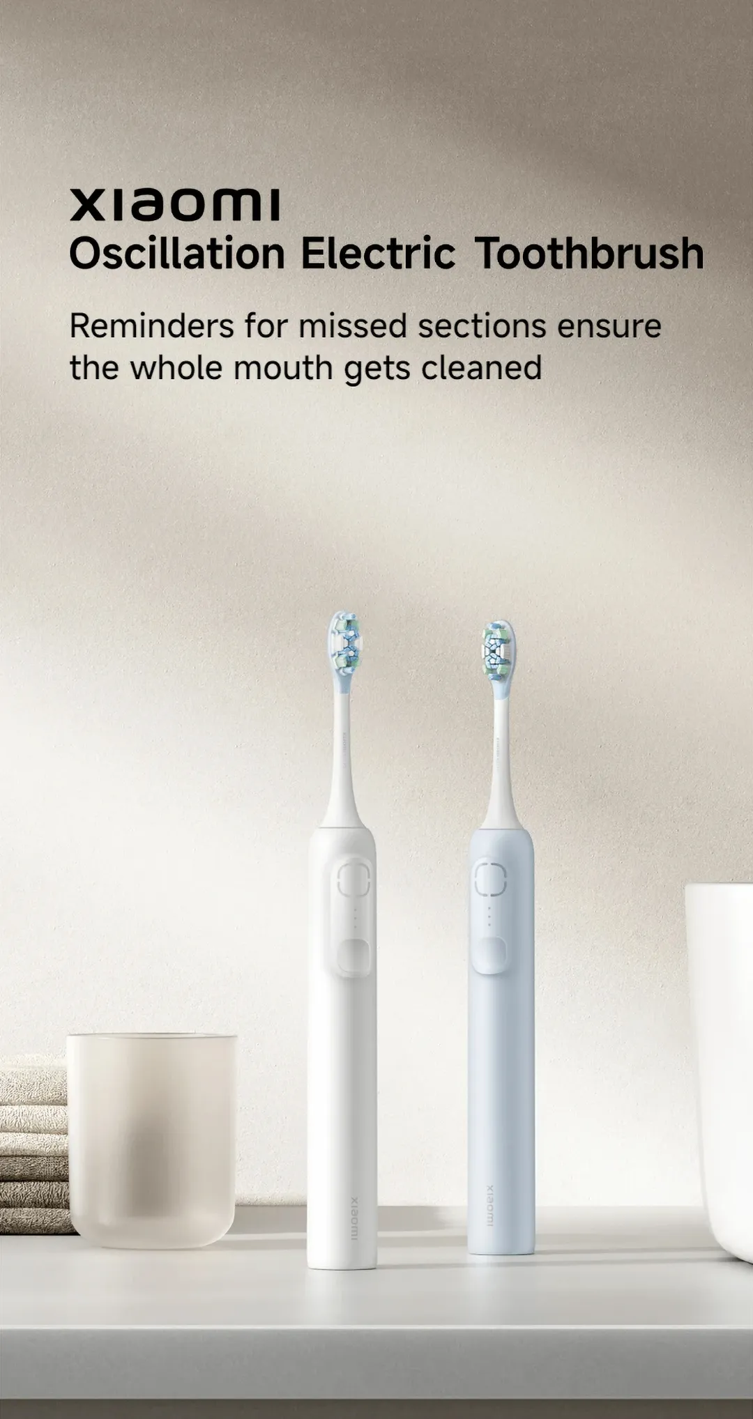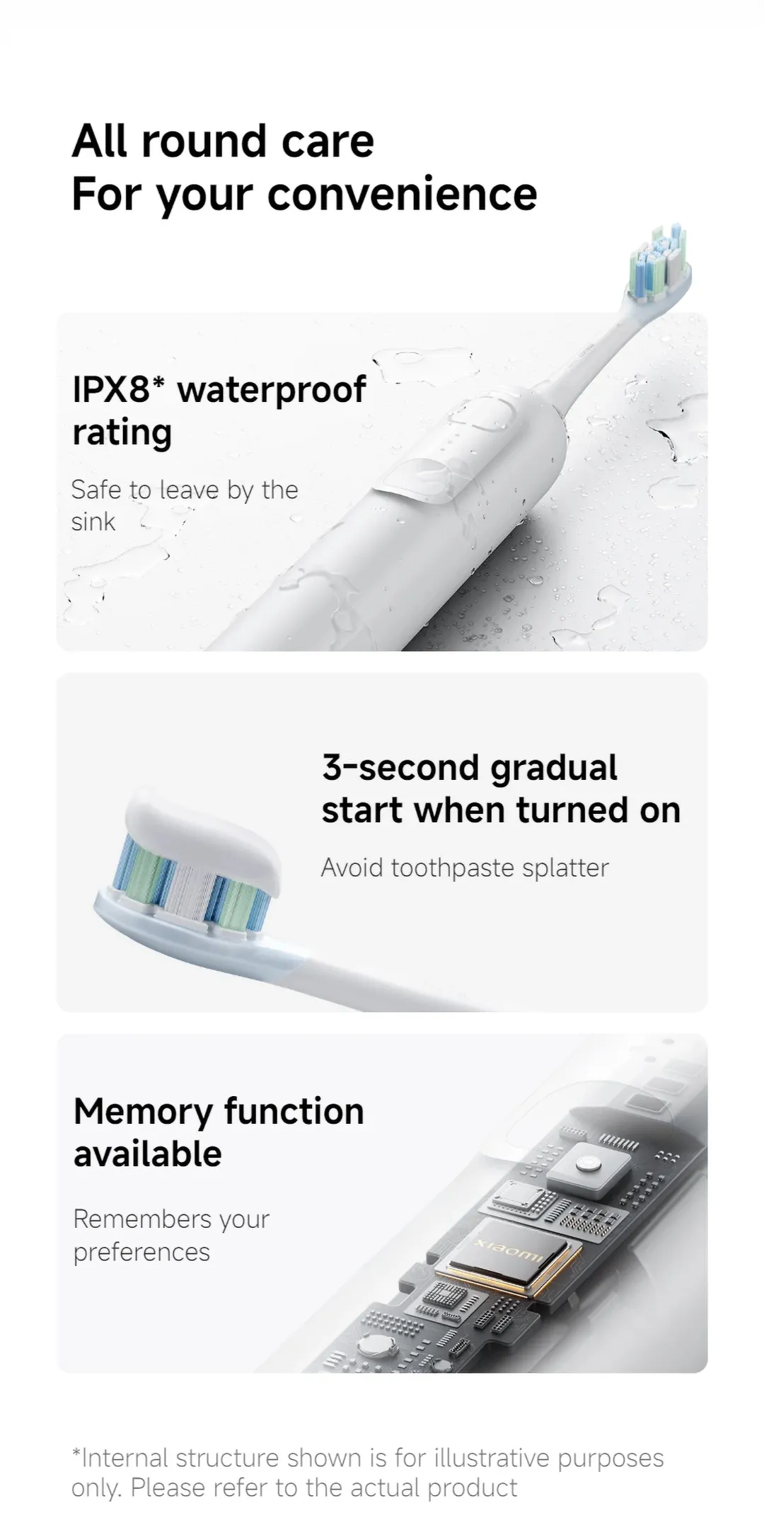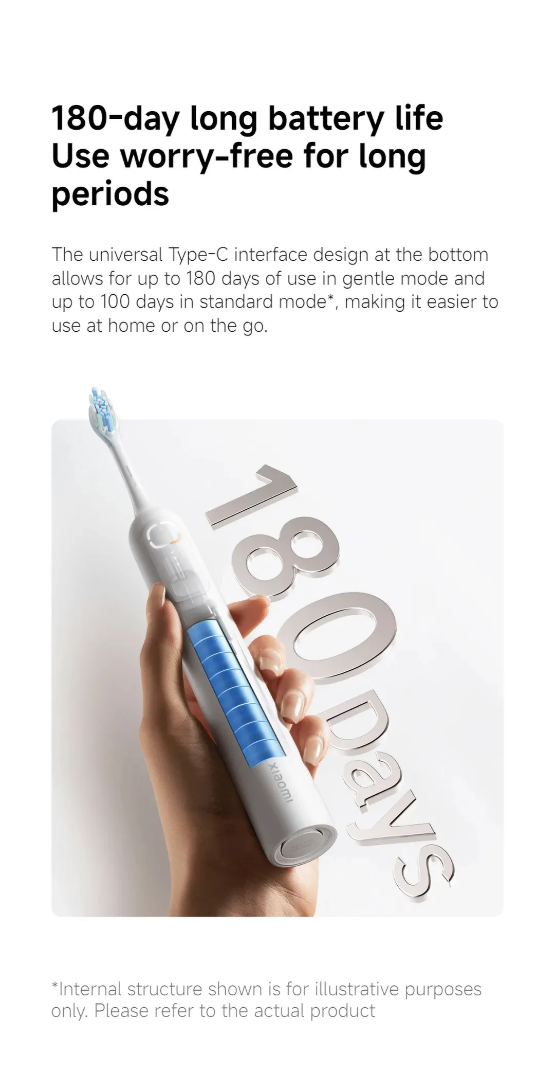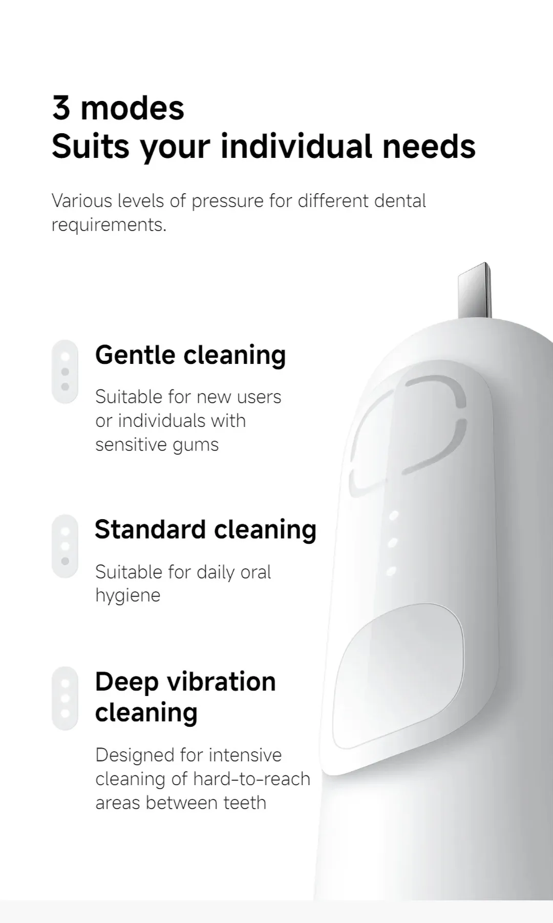 • Three cleaning modes: Gentle (for sensitive gums), Standard (everyday use), Intensive (for deep cleaning of inter‑dental areas).
