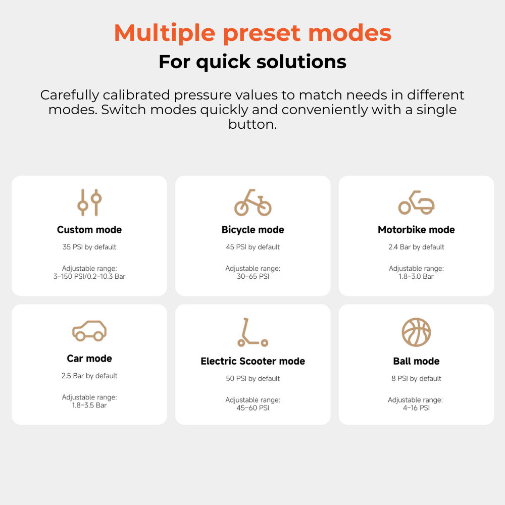 - Inflation progress display - Auto-stops once desired pressure is reached