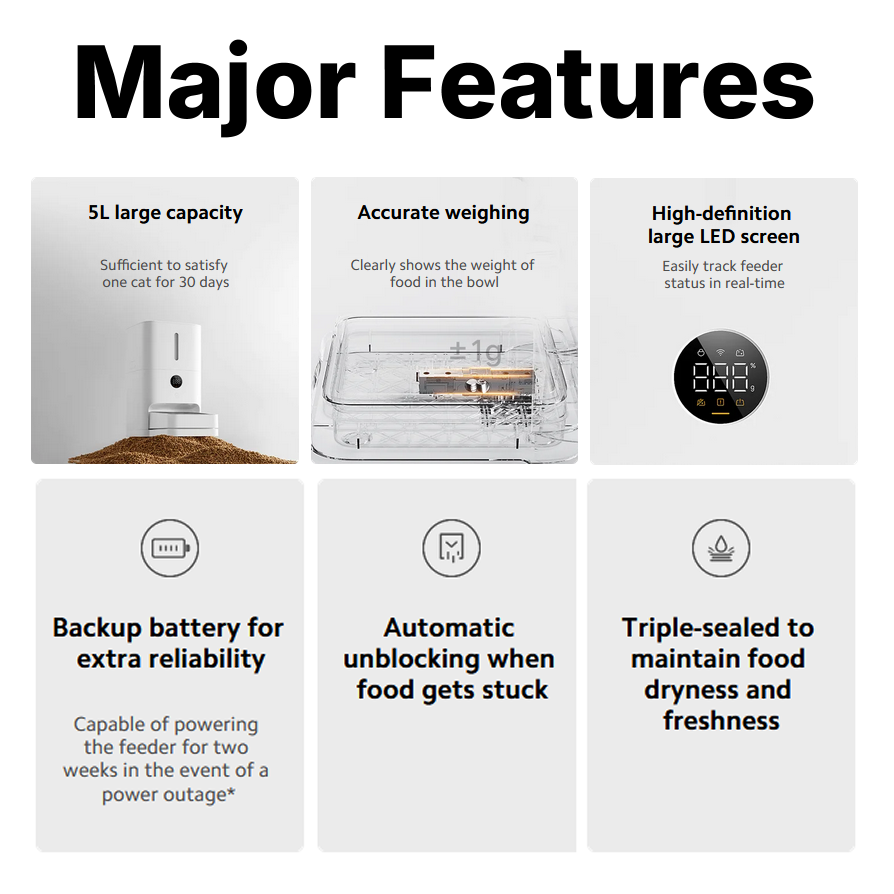 - The test data is calculated based on a 5kg adult cat (or 10kg small dog) eating about 80g (120g) of dry port per day. In actual use, there may be errors due to changes in the objective environment, the type of dry food, or the type of pet, age, health, and behavior.